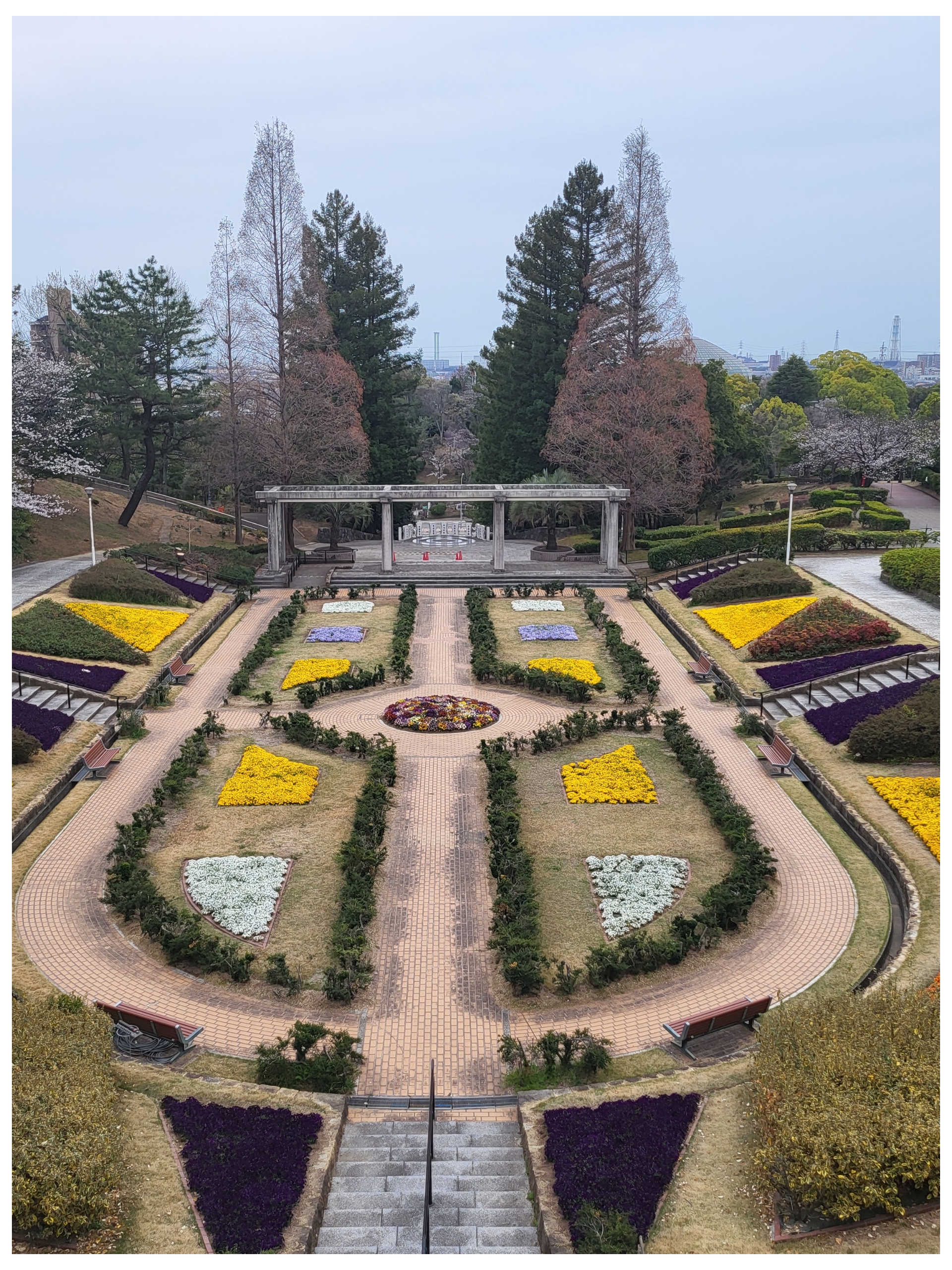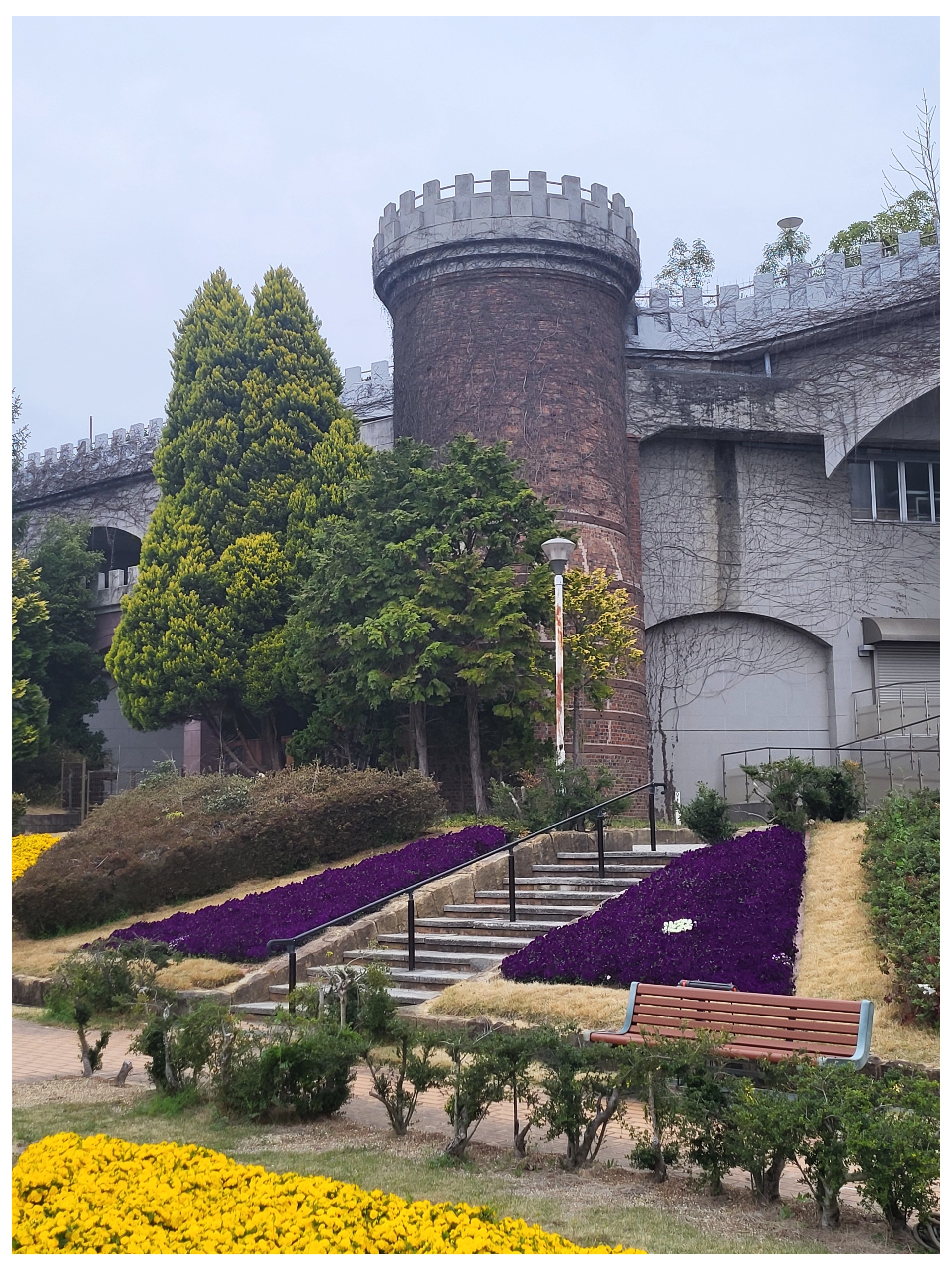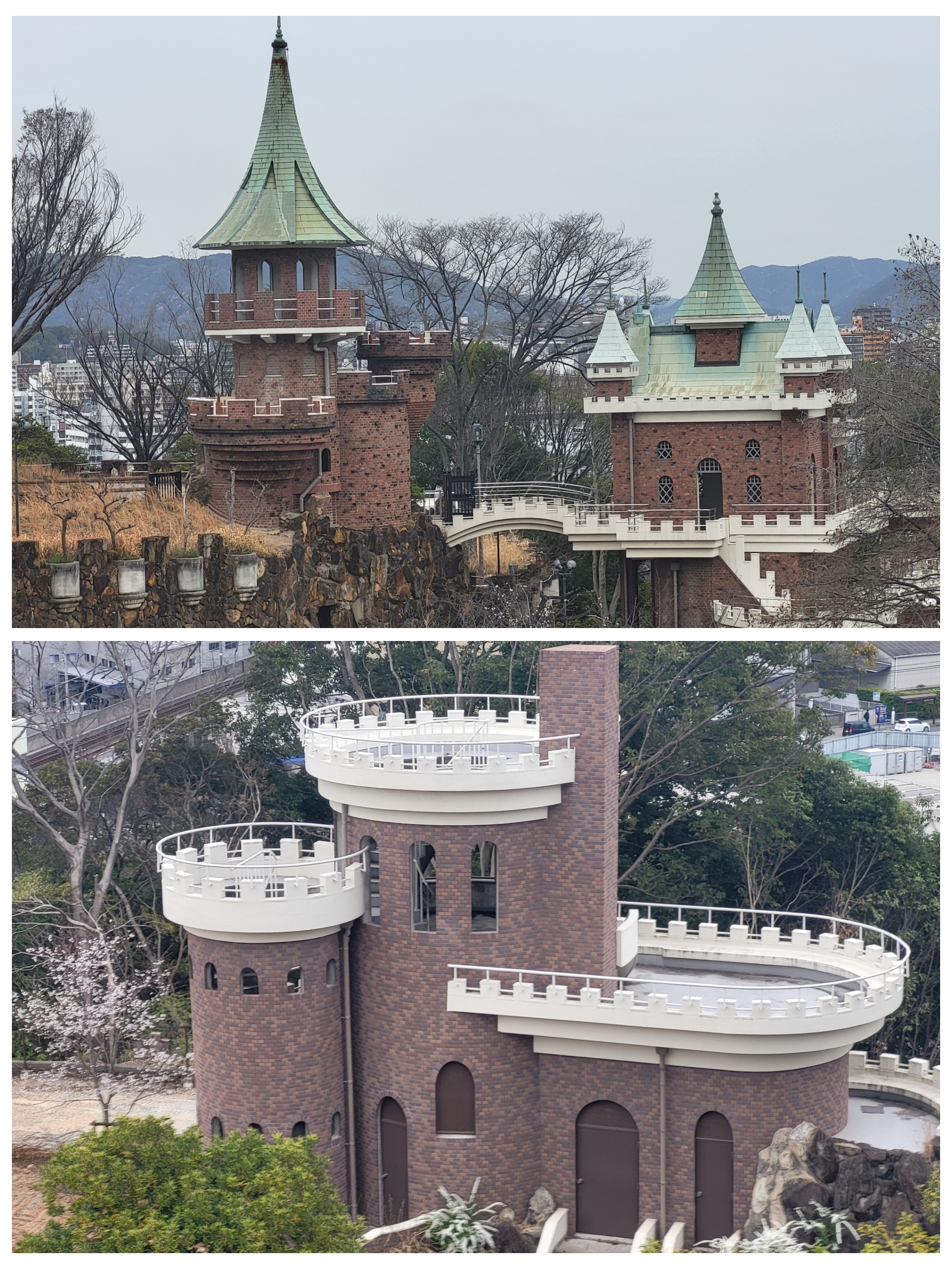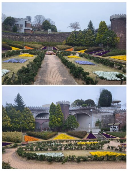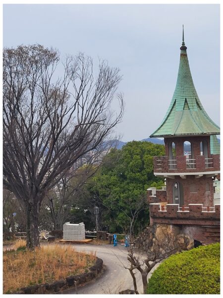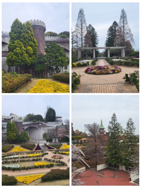 Himeji – parc Tegarayama Surprenant parc avec un beau jardin fleuri, des bâtiment aux allures de château.