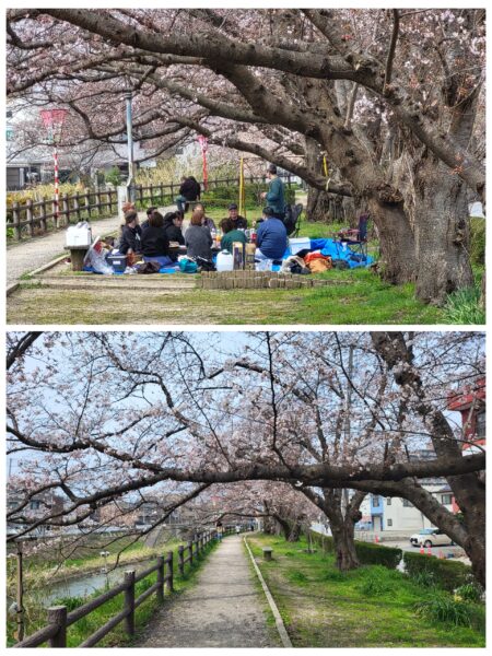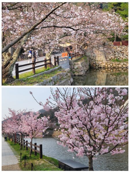 Okayama – floraison des cerisiers On est au début de la floraison des cerisiers, dans le jardin Kuraku-en. Il y avait même une équipe de télévision pour rendre compte de l'évènement.