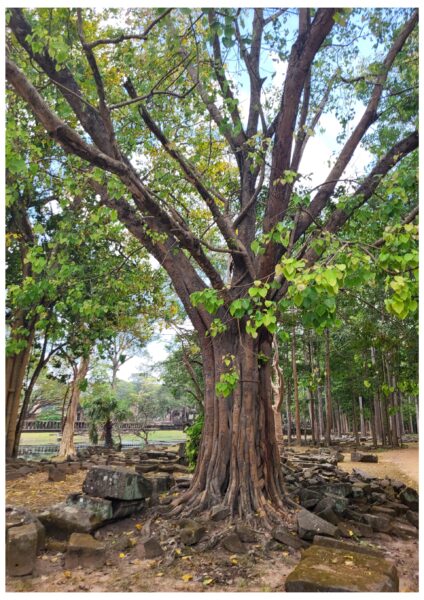 Angkor – Ta Prohm Temple construit au début du 13ème siècle. Il est superbe par ses arbres qui entrelace le temple. Il est le lieu du jeu vidéo Tomb Raider et du film qui en a été fait.
